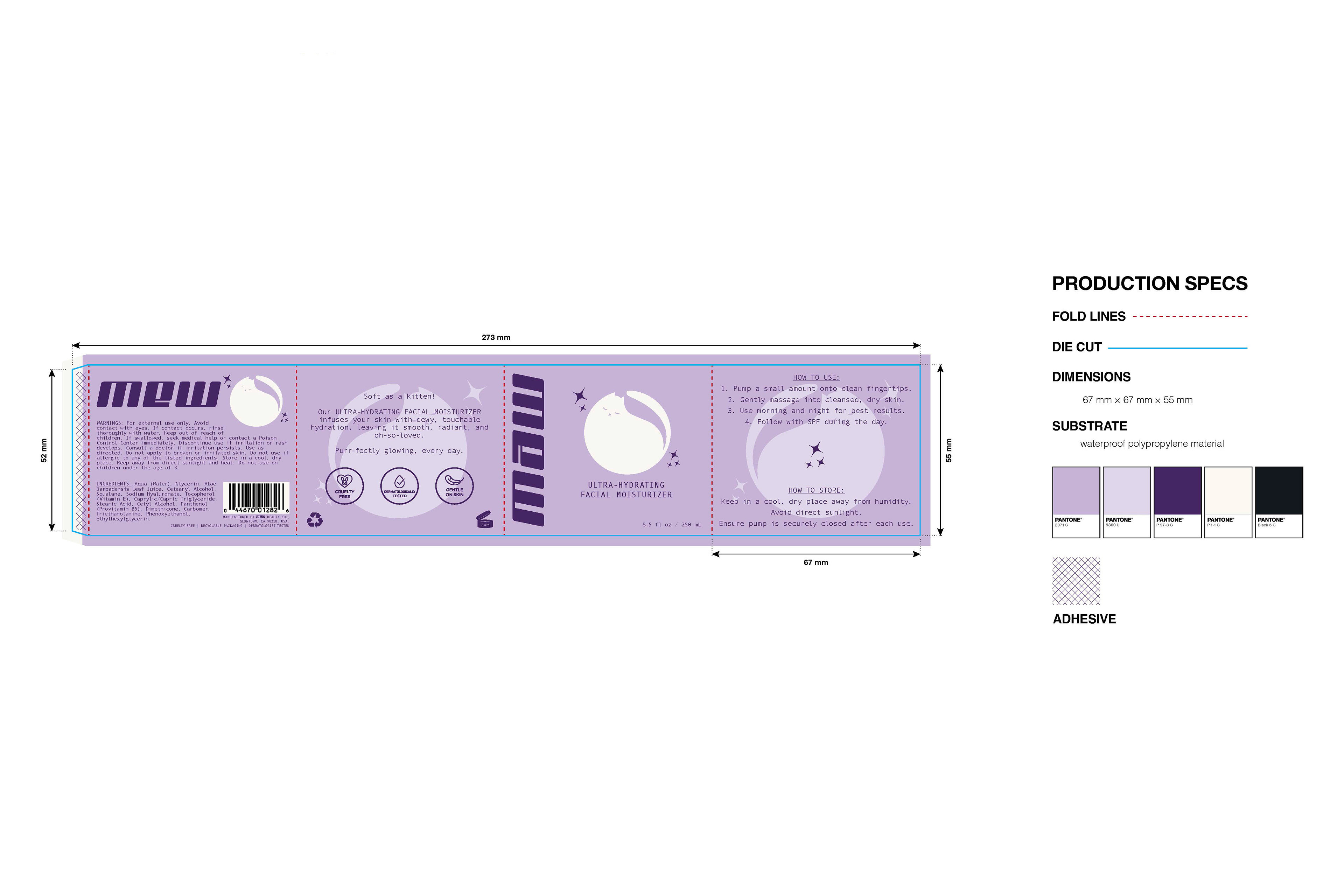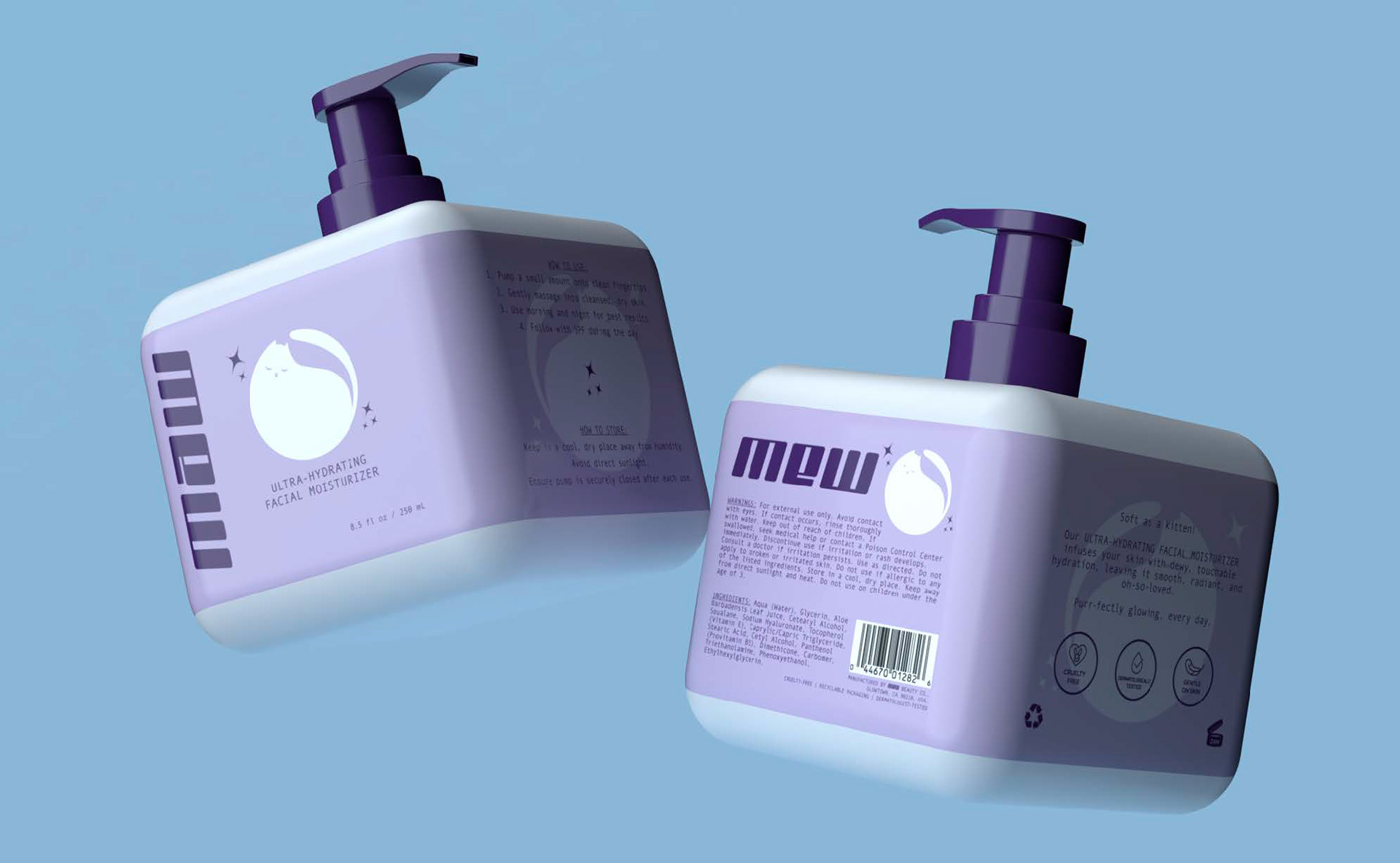 A conceptual product design for a contemporary line of cruelty-free, youth-oriented facial washes and moisturizers.